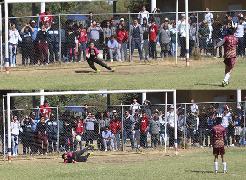 Ante la expectación de la gran cantidad de aficionados y seguidores de ambas escuadras inició la tanda de penales. CBTIS 65 anotó los dos primeros. Pero en el tercer envío, el disparo salió por encima de la portería.