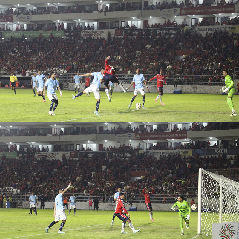 Se empezaron a juntar por el sector derecho el recién ingresado y Gamboa haciendo pasar malos ratos a José Hernández. Vino aquella jugada donde a la distancia nos pareció que el defensor tacleó a Santana dentro del área, pero el silbante no lo consideró así, dejando correr la acción, pero ya se veía algo diferente.