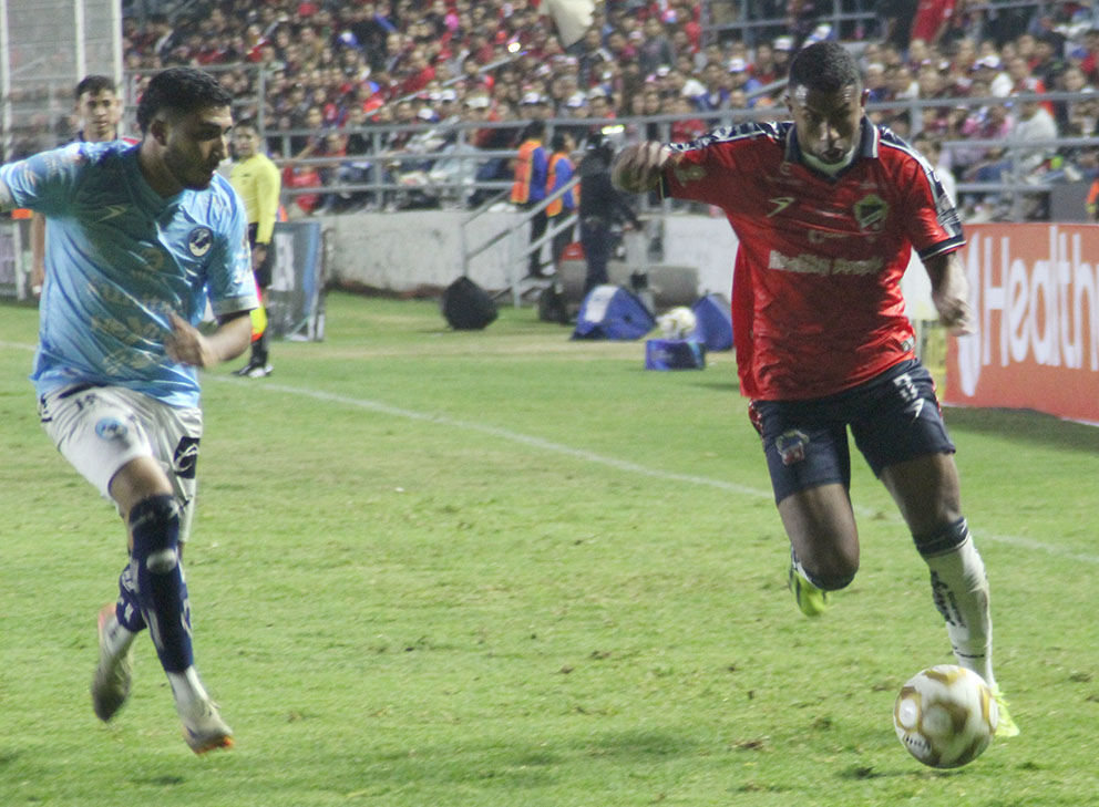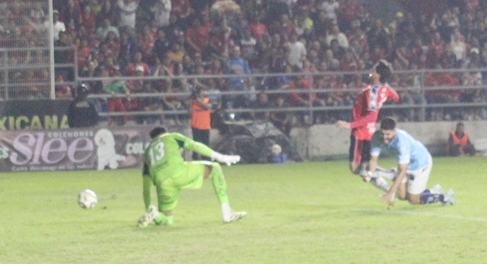 Los pupilos de Marco Antonio “chima” Ruiz no se habían manifestado en su ofensiva. Estaban conformes con quitarle rápidamente el balón a los anfitriones y luego trasladarlo de un lado hacia otro, buscando un espacio para hacer daño. No se les había dado hasta que el minuto 40 en una acción de las mencionadas, tras pasearlo, vino el remate desde muy cerca, que afortunadamente para la escuadra local, su arquero Humberto Hernández, evitó el daño con gran lance.
