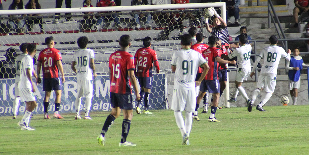 Fue en el minuto 23, luego de varias aproximaciones que Irapuato anotó el 2 por 0. Una serie de intentos de remate que eran tapados por los defensores. El esférico fue por el centro y el “capi” Jassiel Ruiz, la prendió de primera para ponerla a la derecha del portero Bryan Alfredo González, pegando en la base del poste y no quedándole más remedio que ir a recoger la de gajos al fondo de su portería.