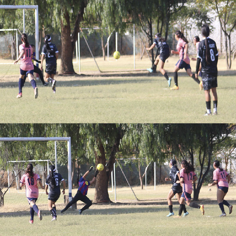 El cotejo futbolístico que tuvo como escenario las instalaciones Maristas, desde el inicio se miró sumamente parejo. Aunque a decir verdad, ENMSI parecía tener mayor control de las acciones, sobre todo en la mitad de la cancha, donde  Aylín Arcos estaba ganando la partida a Lupe Rentería, pero…