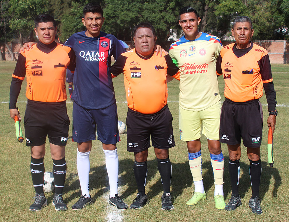 Tripleta arbitral y capitanes.